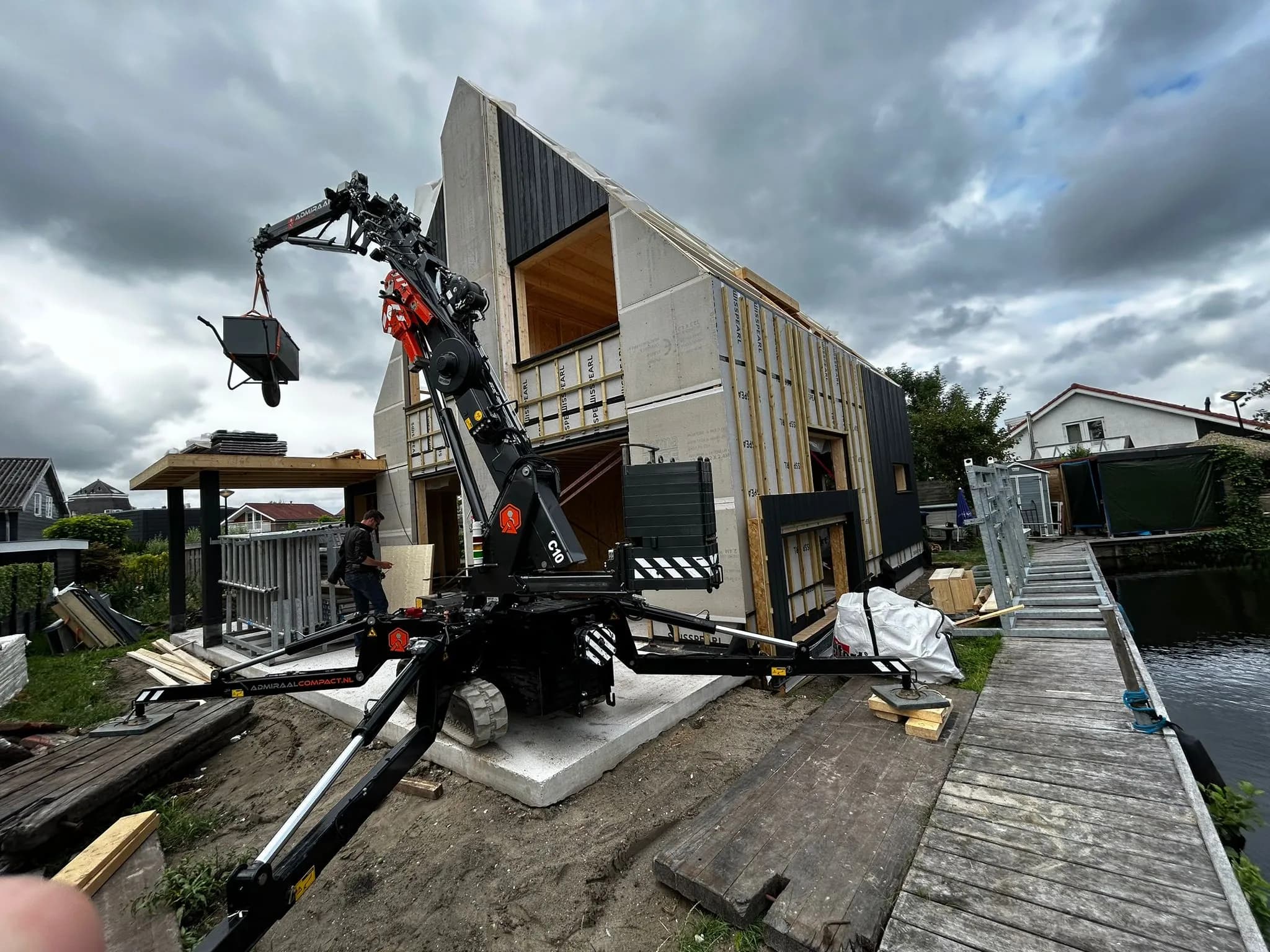 Projecten werden steeds groter. “Toen we groeiden naar complete woningen werd de C6 te licht. Hij draaide vaak te zwaar en na tien jaar was hij natuurlijk ook wat ouder. Toen was de vraag: weer een C6 of overstappen naar de C10? De C6 hebben we dit jaar ingeruild voor de C10, die draait nu een half jaar mee.”